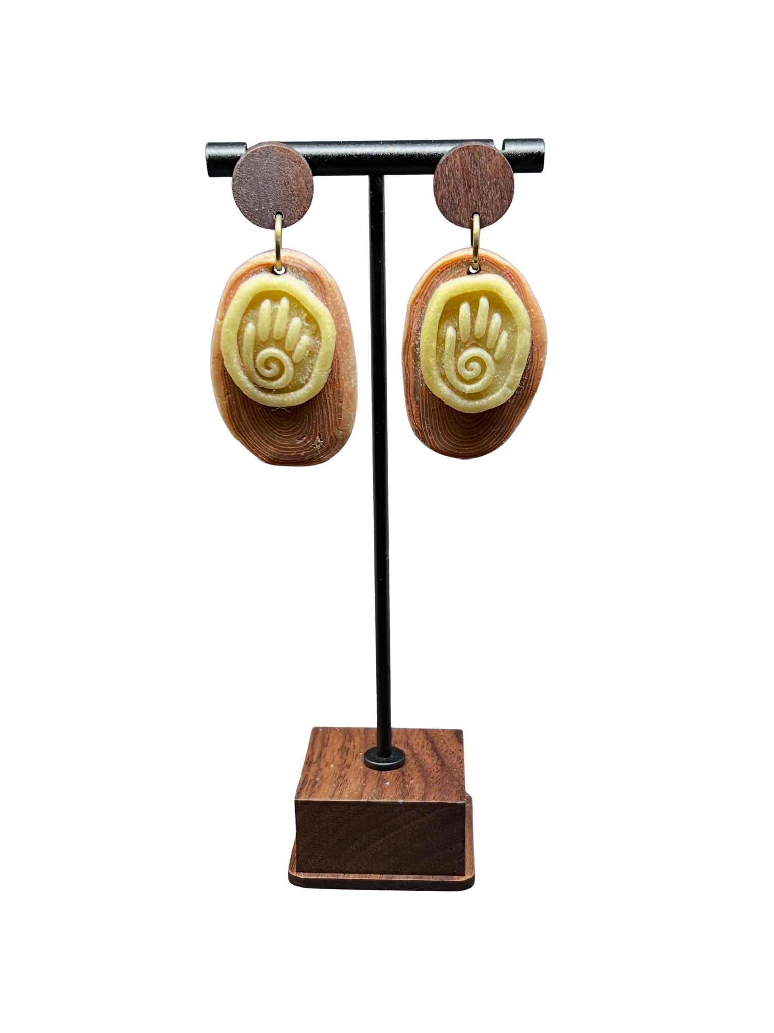 Rudos su šviesia geltona spalvos auskarai iš polimerinio molio