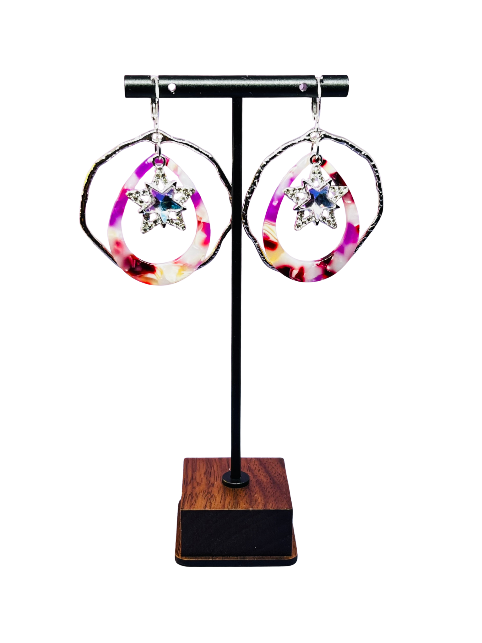 Sidabrinės spalvos auskarai.
